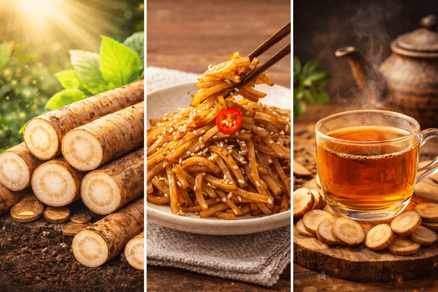 우엉은 단순히 반찬으로만 먹기엔 아까운 식품이에요. 구이, 조림, 차 등 다양한 방식으로 즐길 수 있죠. 특히 우엉차는 체내 지방 분해를 촉진해 ‘디톡스 음료’로 인기가 높습니다.